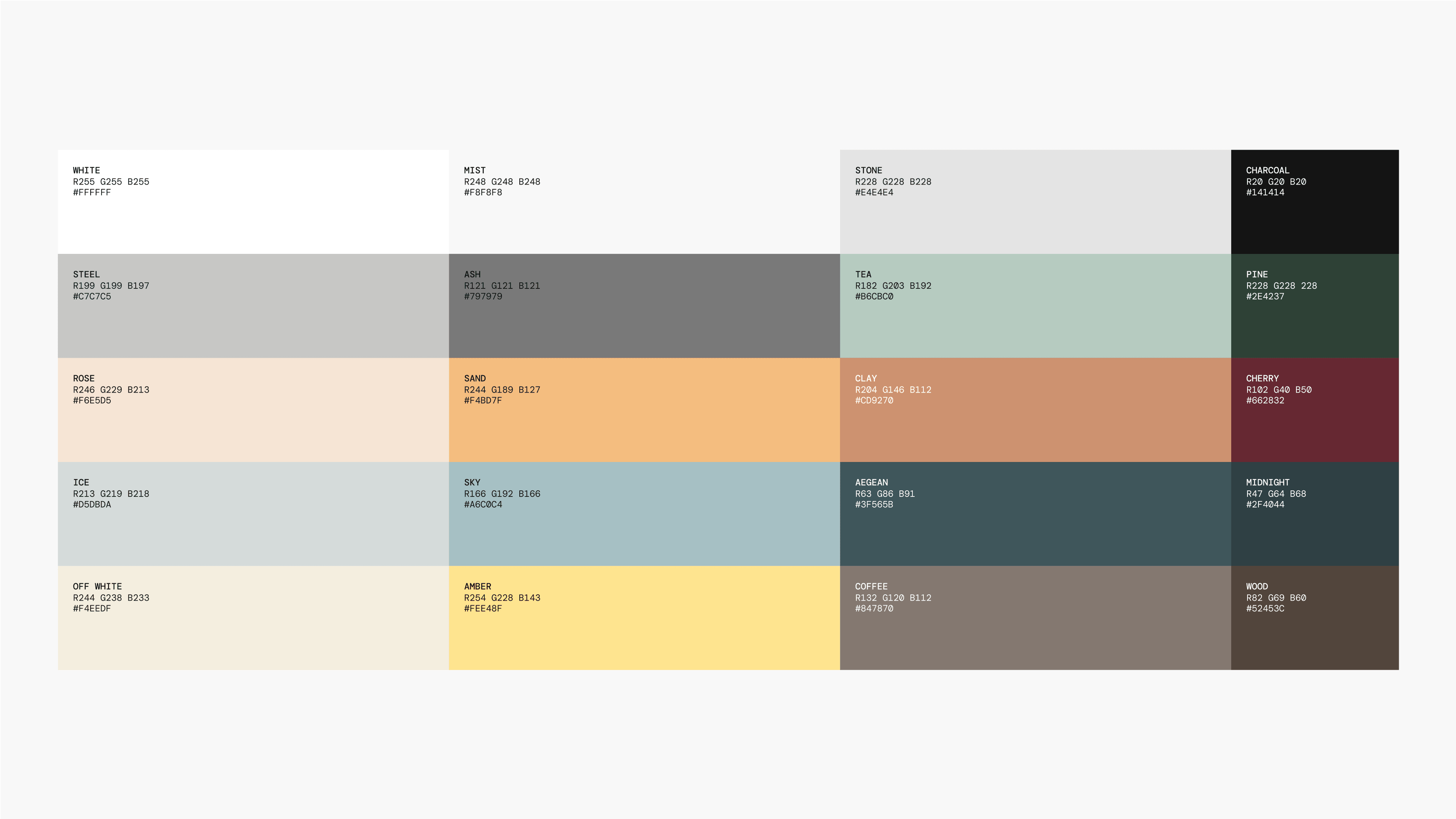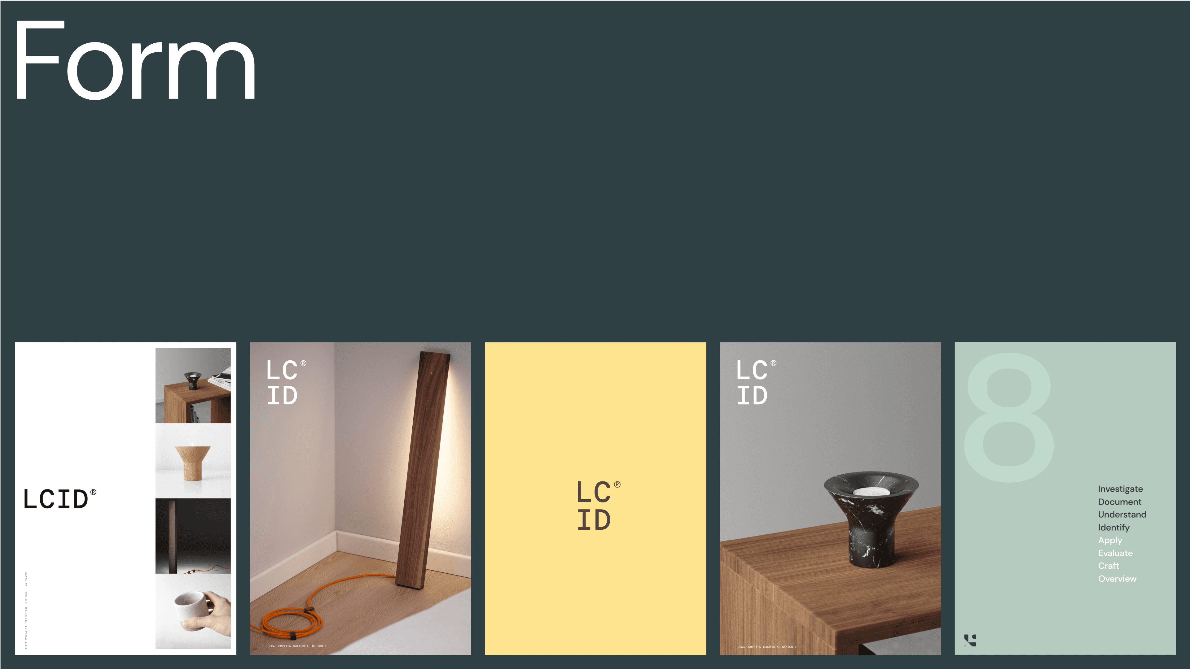 Following the development of a refined brand position and narrative, I designed a Minimum Viable Brand toolkit to establish a cohesive visual identity. The system includes a simple wordmark, a color palette inspired by raw materials, versatile typography, and detailed guidelines for layout, communication, and digital assets. The palette—composed of natural and neutral tones—supports both clarity and character, while an abstract symbol built from Luca’s initials (LC + ID) subtly reinforces the studio’s industrial design focus. Together, these elements provide a flexible and expressive framework that reflects LCID®’s design ethos and supports the storytelling of its process and practice.
